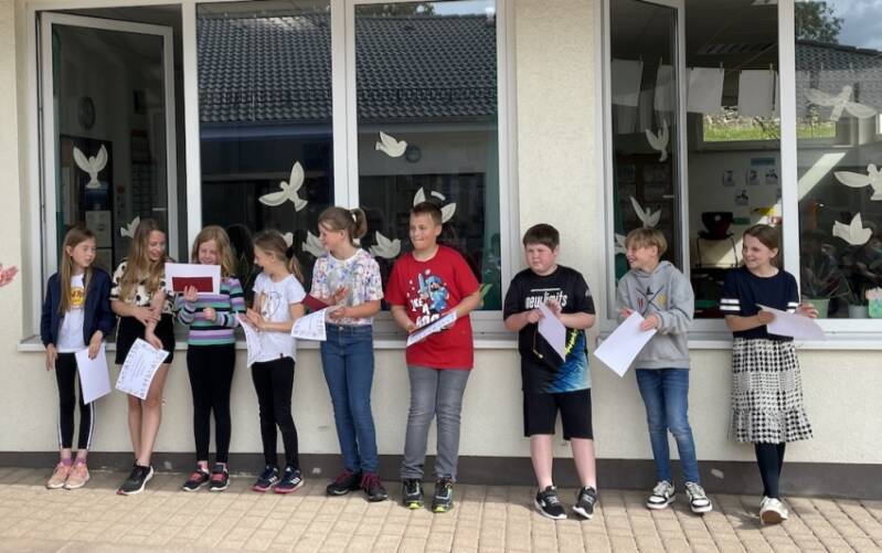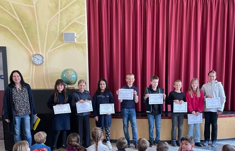 Alle Kinder waren sehr stolz und freuten sich riesig. Bei der Siegerehrung auf dem Schulhof wurden sie von ihren MitschülerInnen gefeiert und beglückwunscht!